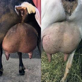 Kastdemur's Aquarelle (granddam to the left) and GCH Here Be Goats Mav Miriam (Mars' dam to the right)